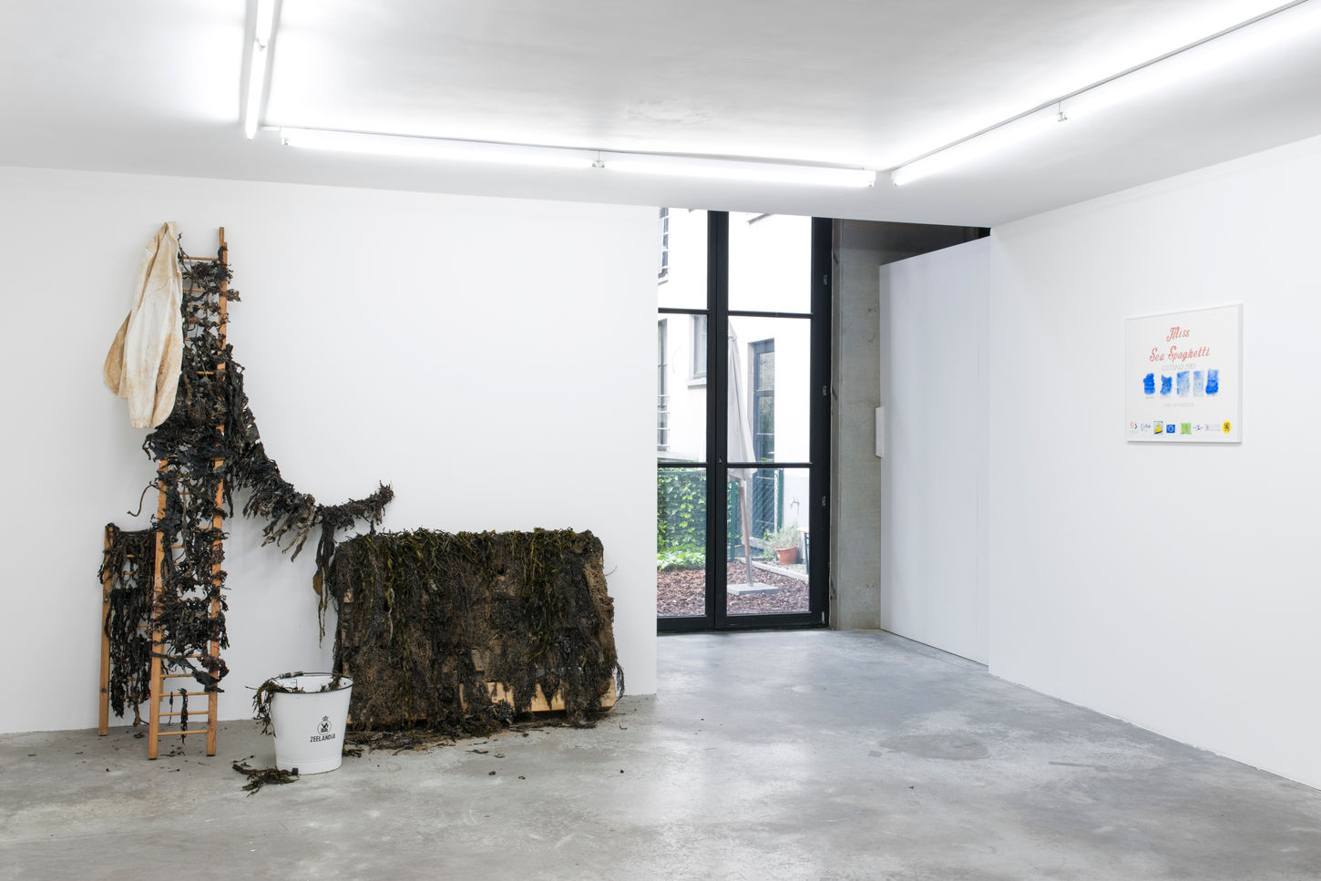 De combinatie van tekst en beeld in de tekeningen creëert een web van verbindingen. Onderzees zou te prozaïsch klinken want het gaat om de relatie tussen cultuur en natuur, van een algen almanak, over ‘seaweed sisterhood’, of nog, de vermelding van historische figuren zoals Isabella Abbot (1919-2010), een Hawaiiaanse wetenschapper en expert op het gebied van zeealgen in de Stille Oceaan. Het is een ontdekking om haar hier in een kunstgalerie te ontdekken. Haar naam verschijnt onder een reeks getekende zeehonden (ook terug van geweest op onze Noordzeestranden), samen met Marvin Gaye (1914-1998), James Ensor (1860-1949), Rachel Carson (1907-1964), biologe en gekend om haar strijd voor de bescherming van het milieu en Jean Painlevé (1902-1989), onderwater cineast. Samen vormen ze de ere-jury van Miss Sea Spaghetti Ostend 1983.