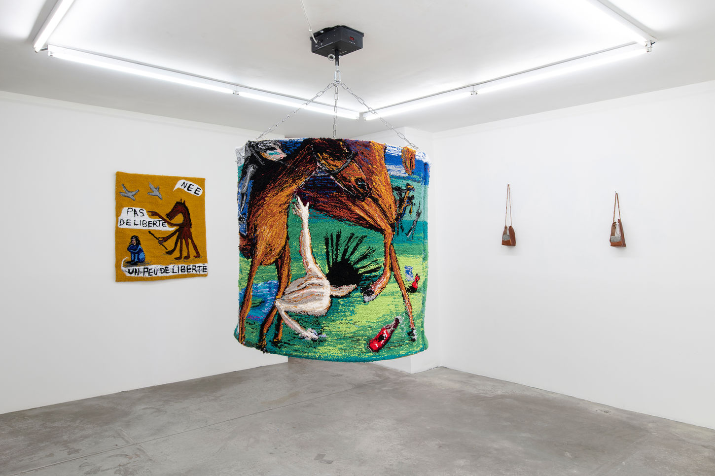 "The Horses Are Coming" arose from "Carousel" (2021), a work in which Elen Braga references the Brussels festival La Boum. That started out as a joke but grew into an illegal gathering of youngsters reclaiming their freedom during the Covid lockdowns and ended in aggressive police action. Horses were deployed to disperse the youngsters, resulting in violent clashes between protestors and police. Elen Braga consequently associates horses with state power. However, the story behind La Boum is complex, as are the underlying power relations. Demonstrating for freedom, in that context, also threatened freedom by risking further proliferation of the pandemic. Among the people who made a point of joining the protest, a majority came from privileged backgrounds and considered freedom to be an obvious right. In that sense the protest was not so much for the common good as it was for personal interest. The restrictive measures against which the youngsters were fighting had been issued by government. To enforce the rules, the government used the police, who in turn used horses as a deterrent and a threat. The real power apparatus is thus invisible and the role of the horse is situated between ruler and subject.